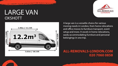 All Removals London's Large Vand and Man service in Oxshott is designed for those with substantial cargo to move. Featuring a spacious van and a skilled driver, we guarantee a smooth, reliable, and secure journey for your valuable possessions. Whether you're planning a sizable move or require commercial deliveries, our service ensures your items reach their destination intact. Here are some situations where a small van is an excellent choice: