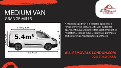 Our Medium Van and Man service in Grange Mills is the perfect choice for mid-sized moves. Equipped with a spacious van and experienced personnel, we facilitate the loading and unloading of your belongings. Be it business goods or household items, count on All Removals London for secure and punctual transport solutions, ensuring a seamless transition. Here are some situations where a medium van is an excellent choice: